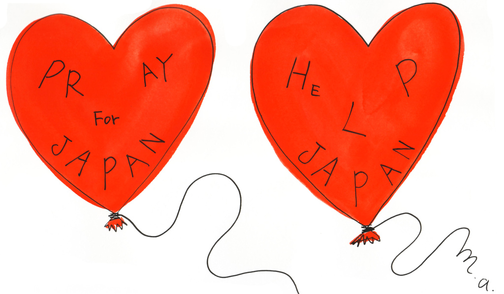 I made The Tohoku Earthquake Charity Post Card with my original illustration! 4cards + 1 cards as present, so 5 cards set, ¥500. I will donate the profit except the first cost and printing cost to Japanese Red Cross Society.