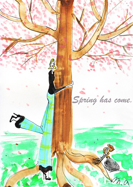 Today wasn't so fine day, but felt the spring atmosphere softly. After so long absence, i went to Setsu and drew, talked with friends, looked the cherry blossom blooming, my paints were selected to the Setsu exhibition, and had my fill of delicious Yakiniku dinner, what a happy and nice day.