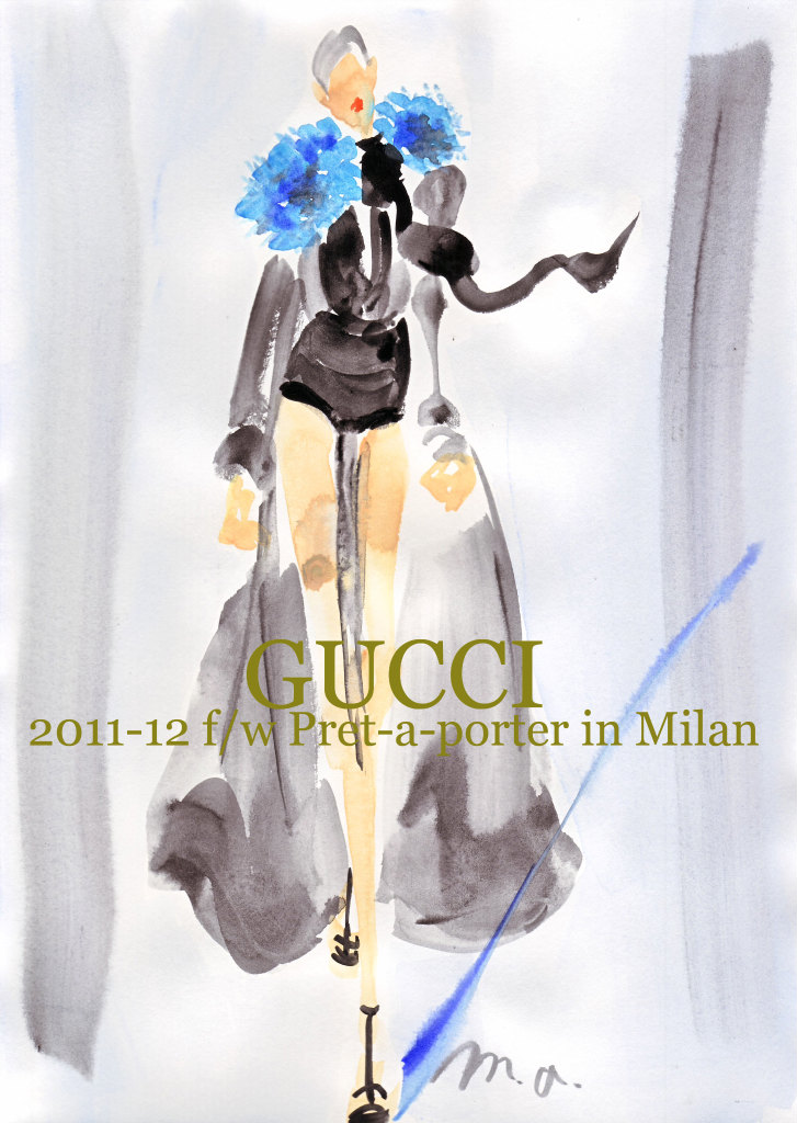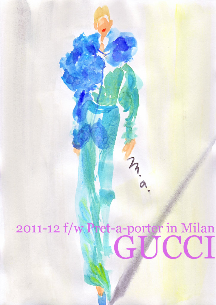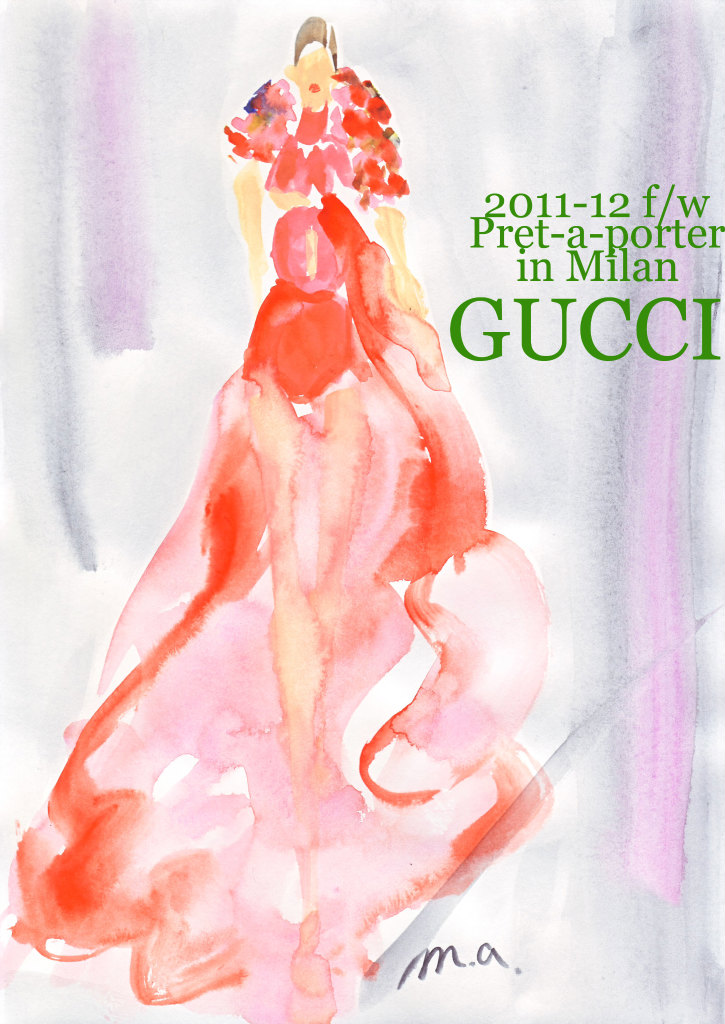 いよいよミラノのファッションウイークもスタート。さすがはグッチ、ヴィヴィッドな色も上品で洗練された雰囲気が素敵。花のモチーフとシフォン素材の組み合わせが美しい。春夏のプラダの影響?のカラーファーもグッチらしい色使いで印象に残った。